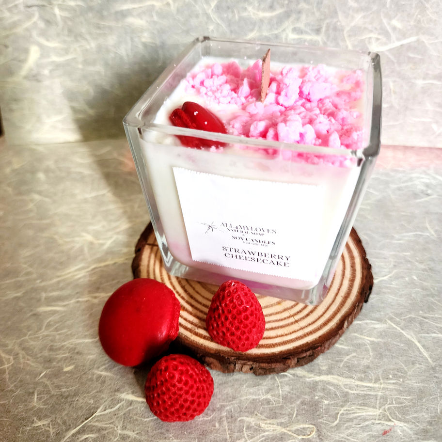 Experience the irresistible scent of our Strawberry Cheesecake Dessert candle, a 9 oz 100% handpoured soy candle crafted with care by All 4 My Loves. This heavenly fragrance fills your space with the sweet, creamy aroma of fresh strawberries and rich cheesecake, creating a cozy and inviting atmosphere. Perfectly designed for those who appreciate quality and thoughtful details, this candle promises a clean, long-lasting burn. While it smells heavenly, remember you cannot eat it—enjoy the dessert without the calories. Elevate your home with a touch of warmth and love from All 4 My Loves.